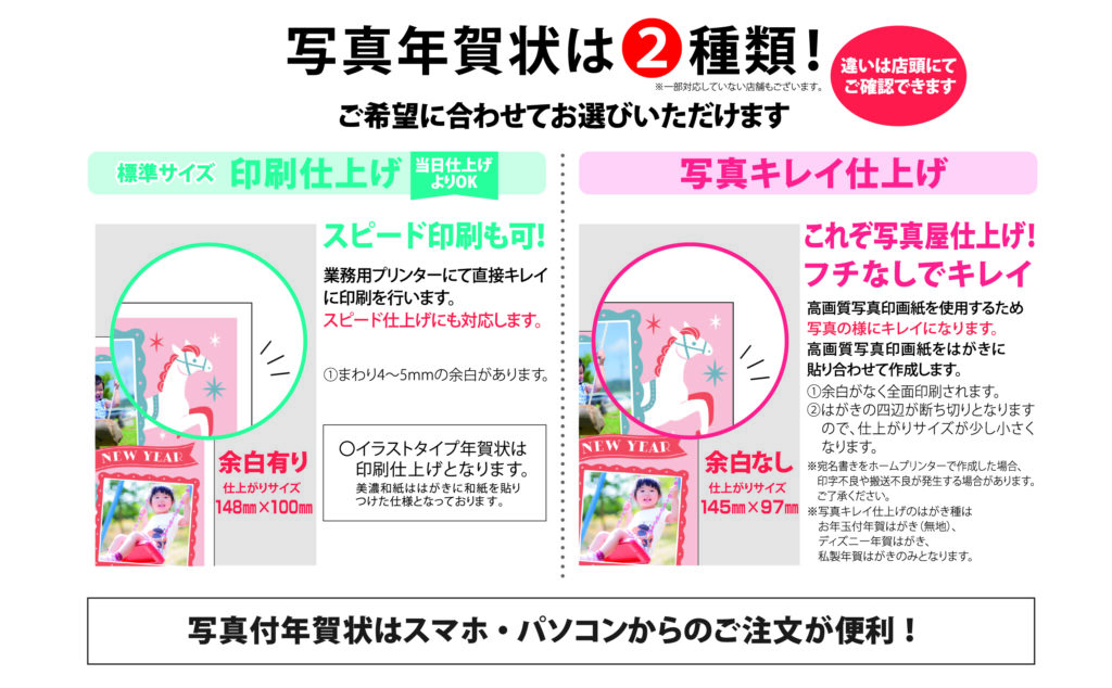 ・受付期間が限定されているはがきの場合、時期によりご注文の選択ができない場合があります(年賀はがき等)