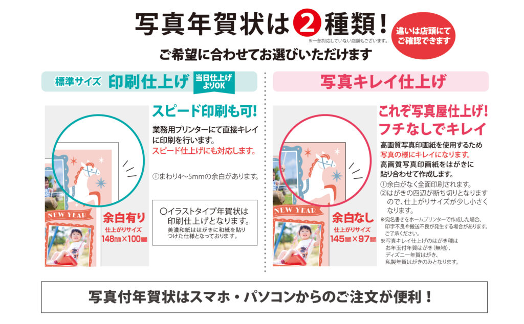 ・受付期間が限定されているはがきの場合、時期によりご注文の選択ができない場合があります(年賀はがき等)