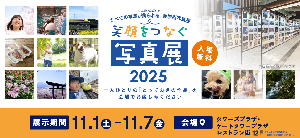 応募いただいた作品は全て今回の展示会場である『タワーズプラザ』『ゲートタワープラザ』に飾られます。