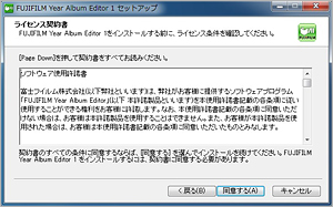 「次へ」ボタンを押すと、左の「ライセンス契約書」のウィンドウが開かれますので、内容をご確認いただいた上で、「同意する」ボタンを押してください。
