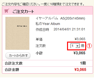 最初に、注文する冊数を設定してください。(①)