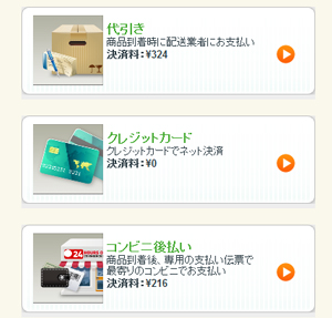 配送方法で「宅配」を選択された場合、お支払い方法選択画面が表示されます。